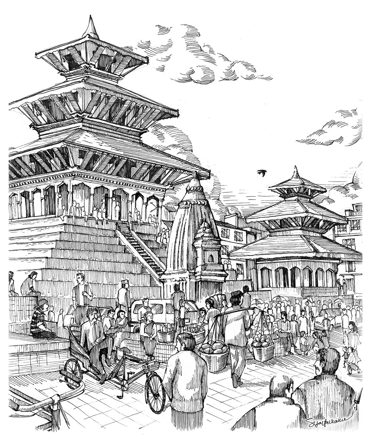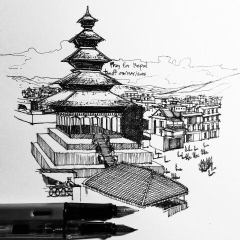 Ink Drawing Nepal Se...